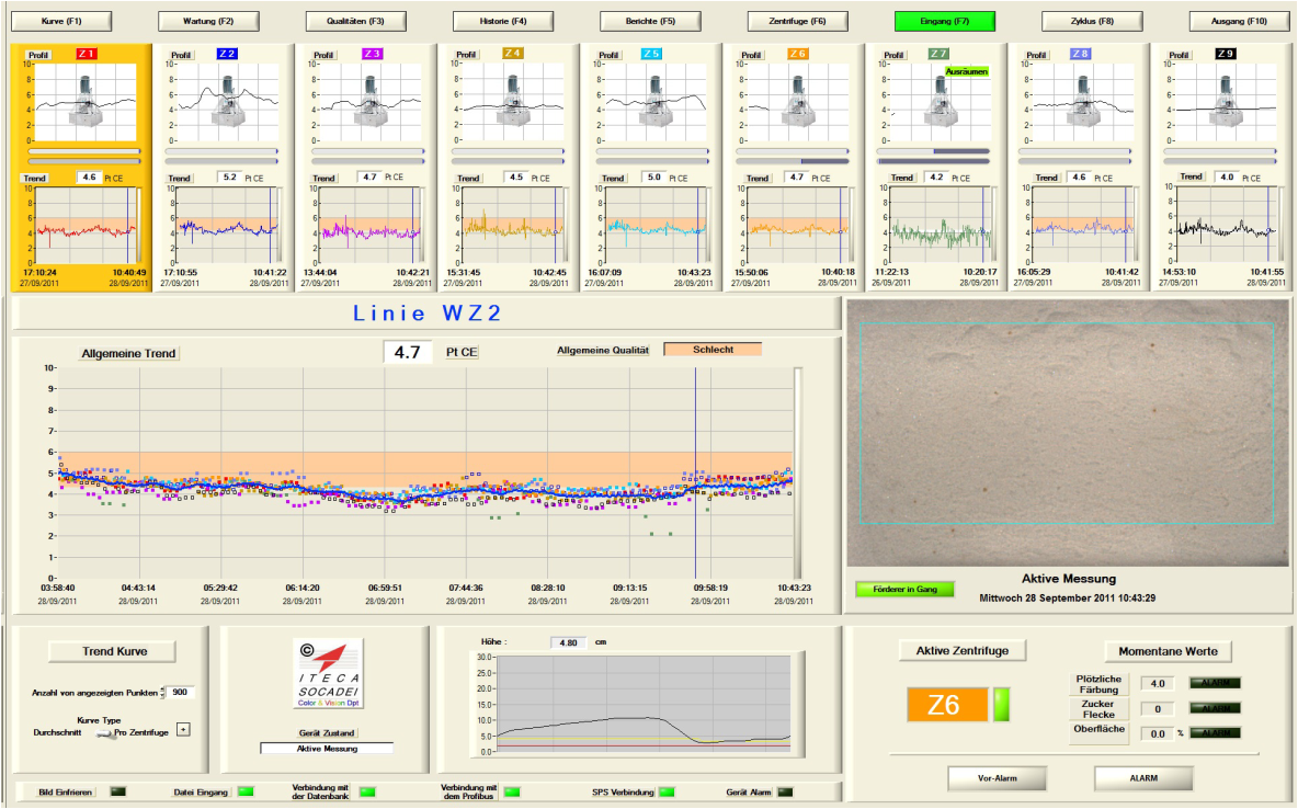 It can also provide valuable information on the centrifugal operation. The ITECA software communicates in Real time with the centrifugals PLC to optimize their washing time.