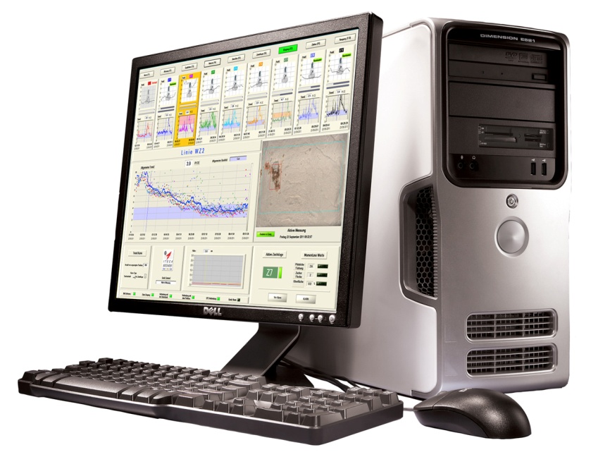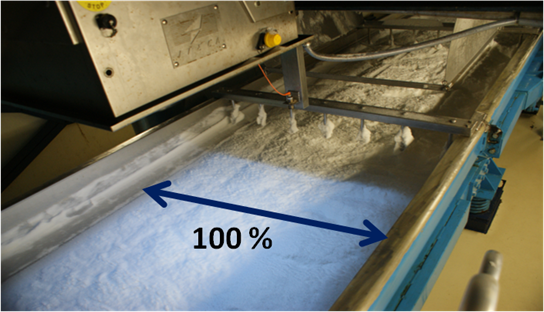 The sugar colour is measured using an on-line colorimeter placed above any type of conveyor : screw, drag, vibrating plate, hopper, belt, etc. Powerful stroboscopic flash lamps LED or lightproof XENON covering the full visible spectrum illuminates the sugar surface. A digital camera measures the reflected light and sends the images to a computer in control room where they are processed in Real Time by dedicated software. The data is filtered and a mathematical algorithm applied.