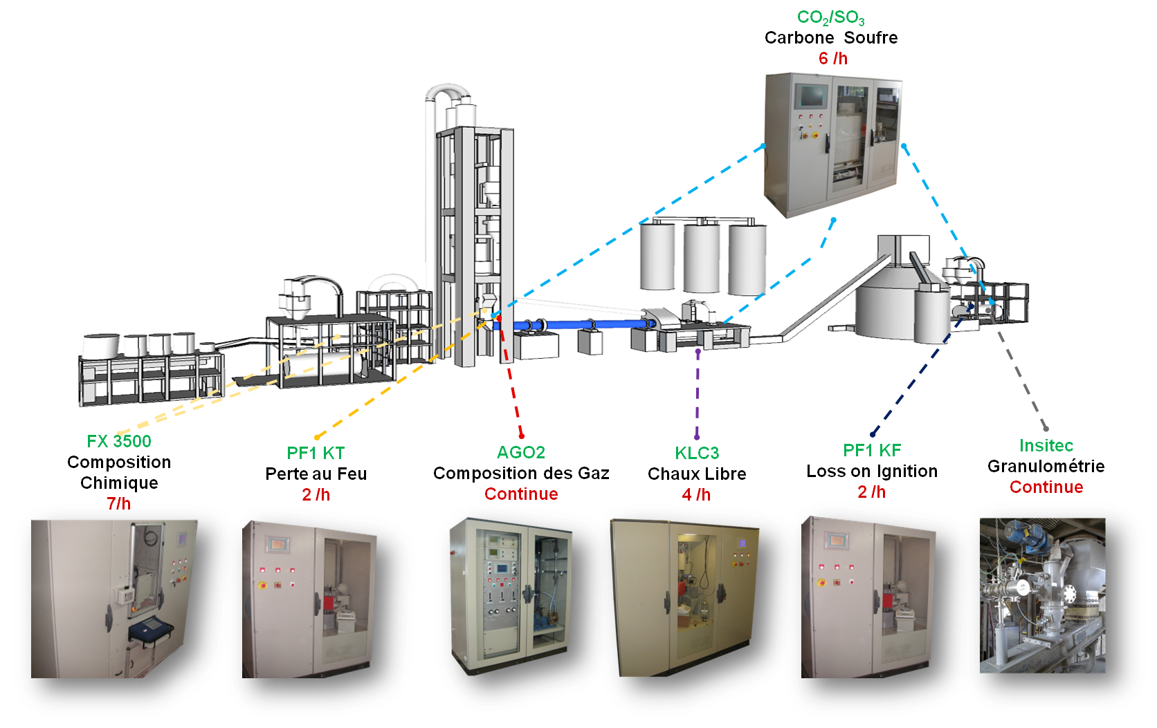 - Possibilité de contrôler plusieurs points (broyeurs ou lignes de fabrication) avec un seul analyseur