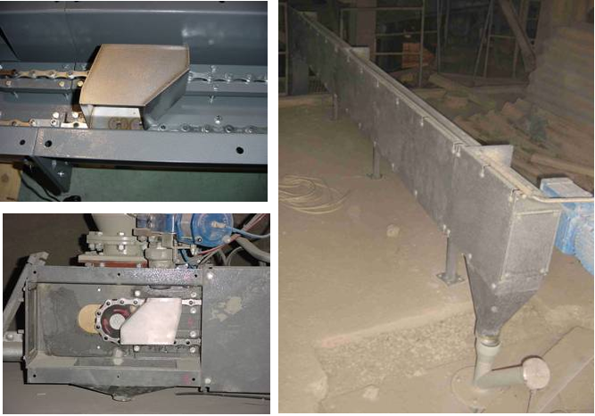 Ce convoyeur élévateur est composé d’une poutre en C qui sert de châssis et d’une chaîne sur laquelle est fixé un godet en acier inox.